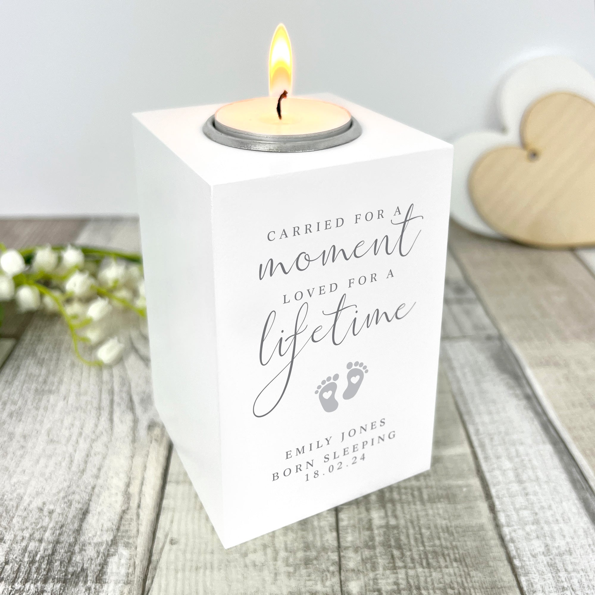 Personalised Feather Filled Glass In Loving Memory Tea Light Holder