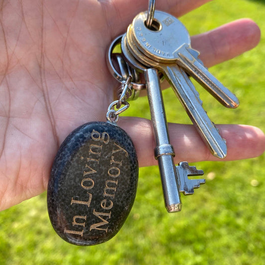 Memorial Keyring. Marble Pebble Engraved With Your Choice of Message.
