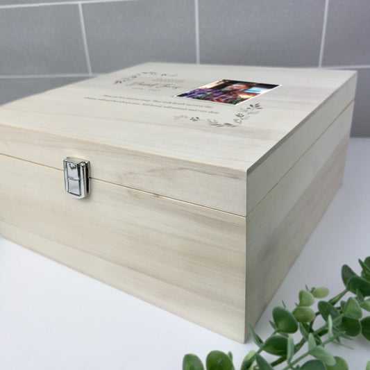 Personalised Luxury Square Wooden 28cm One Photo Keepsake Memory Box