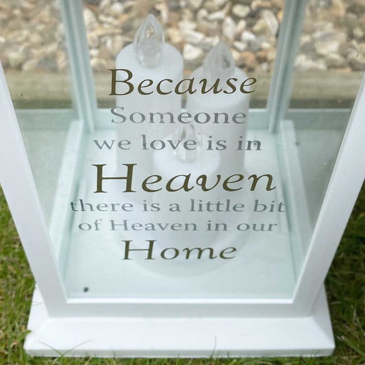 Memorial Lantern, 3 LED Candles, White, 'A little bit of Heaven in our Home' Sentiment