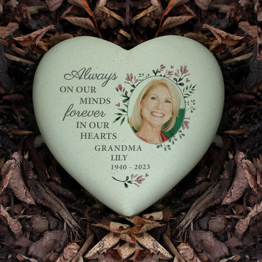 Personalised Floral Memorial Resin Heart Shape With Photo Upload