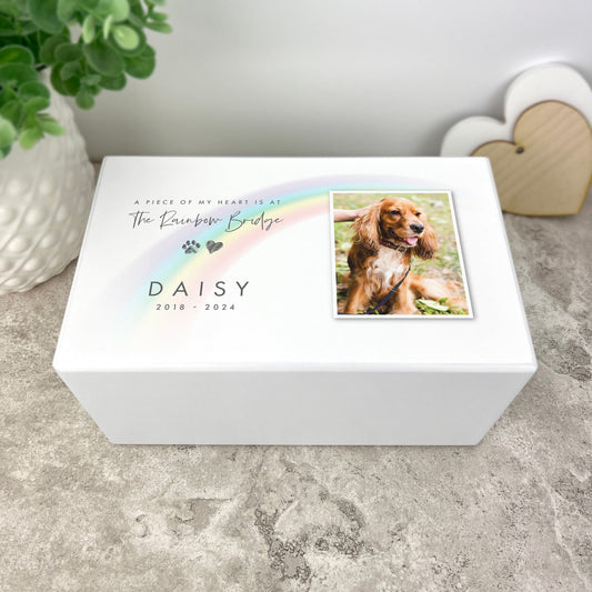 Personalised Soft Rainbow Bridge Photo Cremation Urn For Pets Ashes | 1.09 Litres