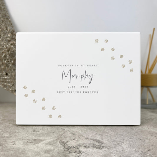 Personalised Neutral Paw Prints Cremation Urn For Pets Ashes Holds 9.5cm x 6cm Photo Landscape | 0.51 Litres
