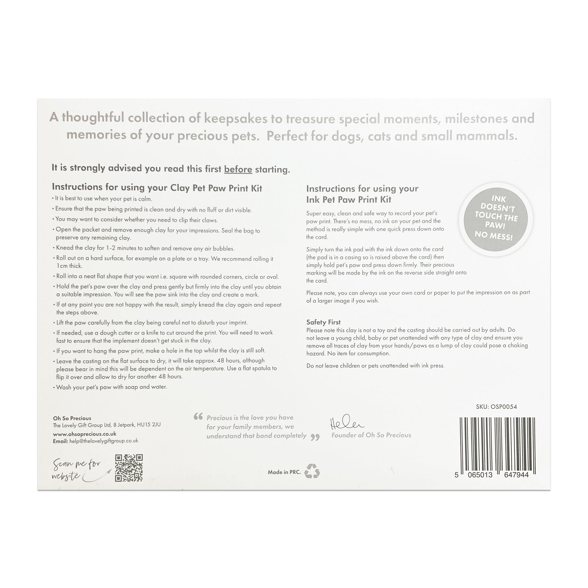 This complete pet keepsake kit includes: