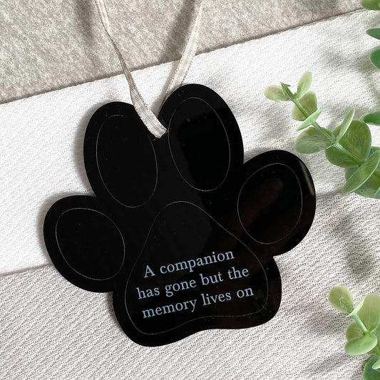 Acrylic Memorial Paw Print Hanging Decoration 'The Memory Lives On' - Colour Options