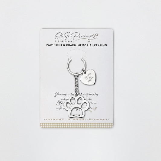 Always In My Heart Charm Paw Memorial Keyring
