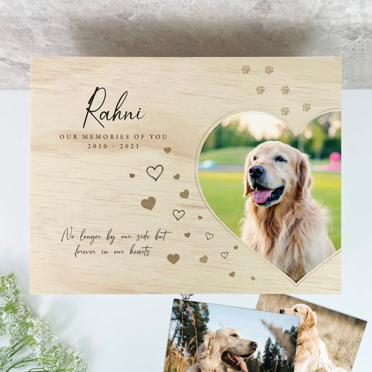 Personalised Large Wooden Pet Memorial Photo Memory Box - 5 Sizes (16cm | 20cm | 26cm | 30cm | 36cm)