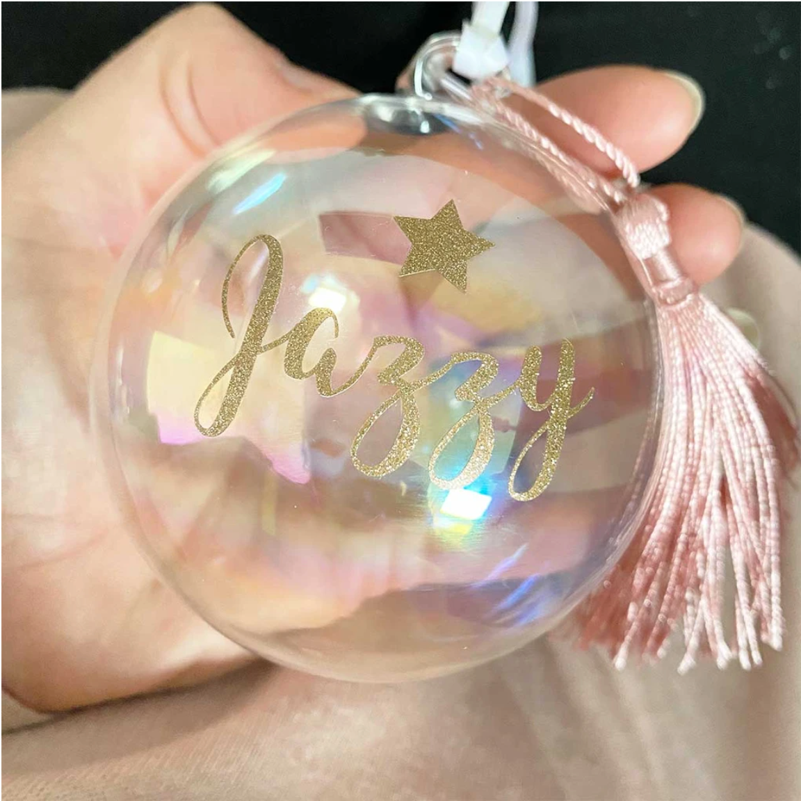 This beautiful iridescent glass bauble is also decorated with a tassel and organza bow. We have a number of tassel colour options.