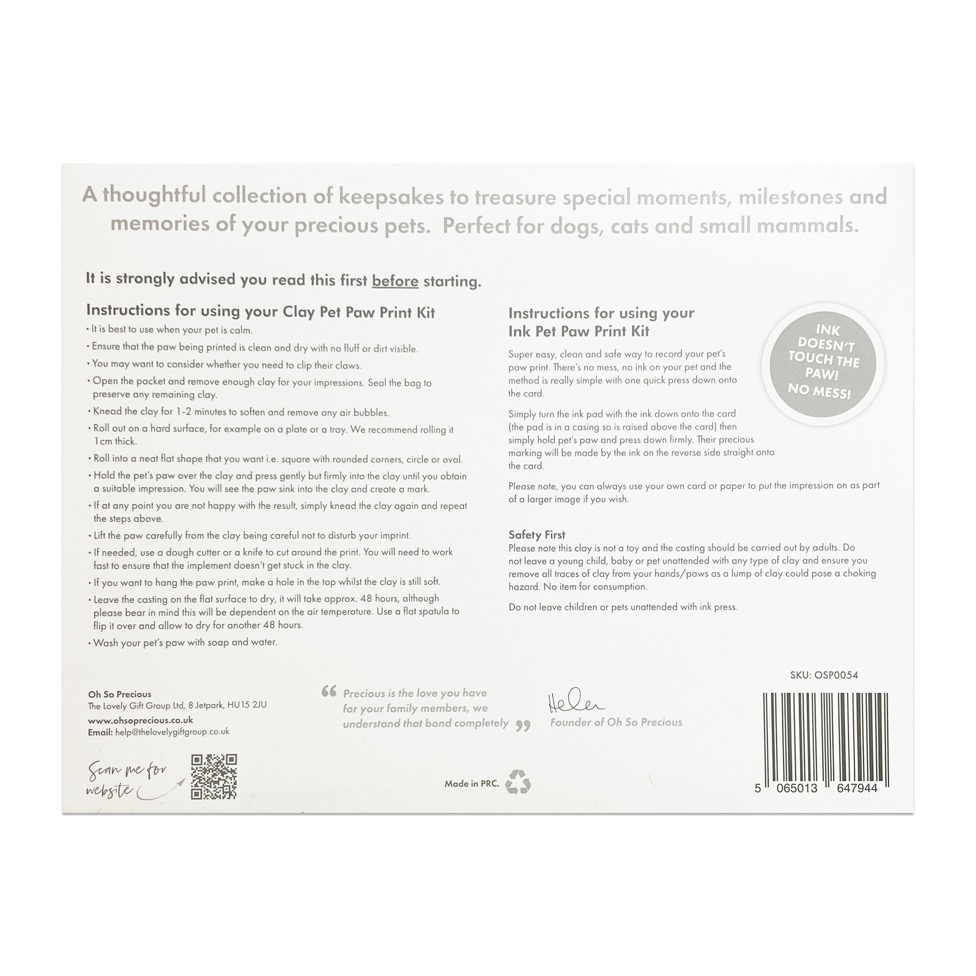 This complete pet keepsake kit includes: