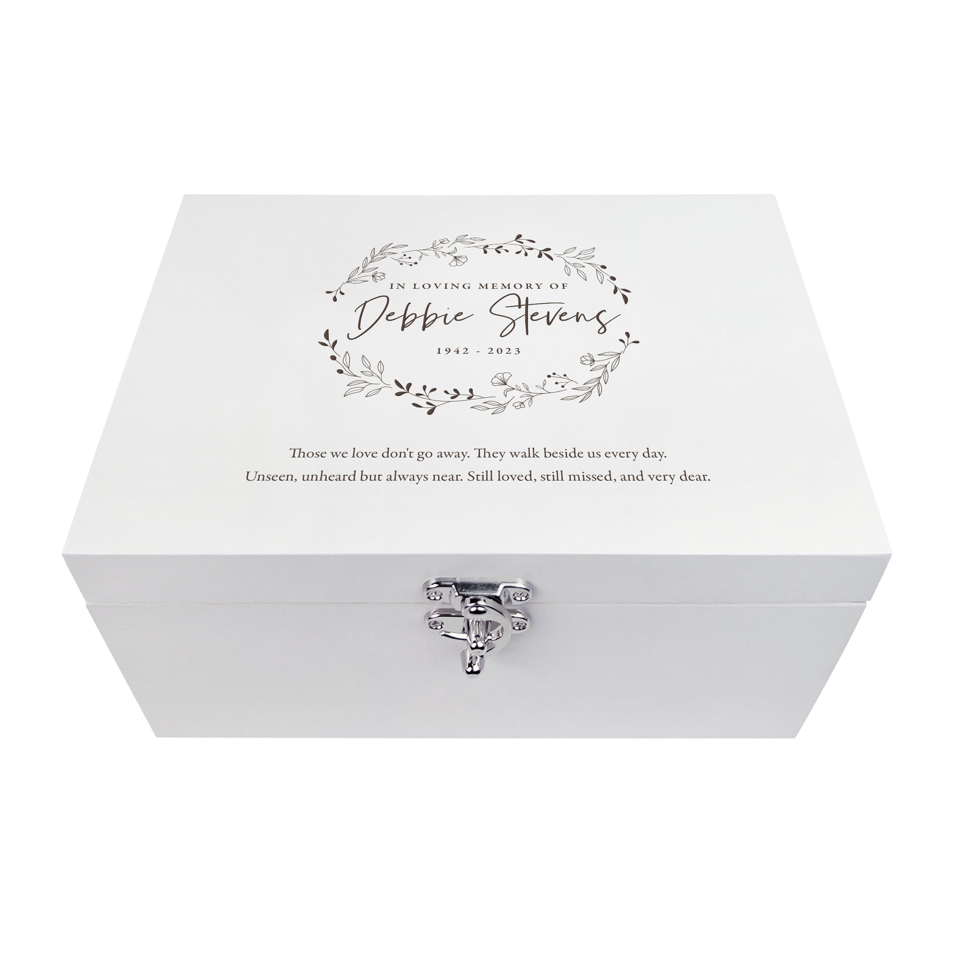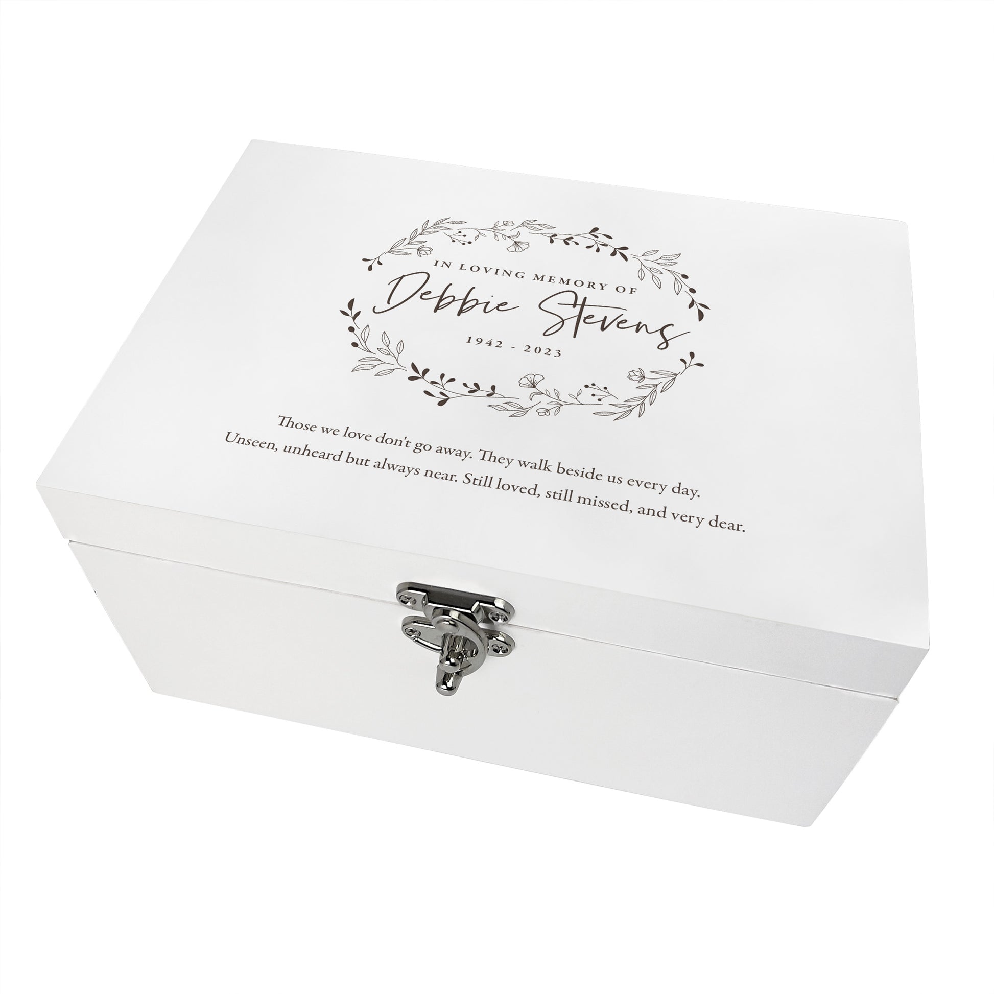 This elegant wreath design personalised memory box is a beautiful place to keep your loved ones precious memories safely inside.