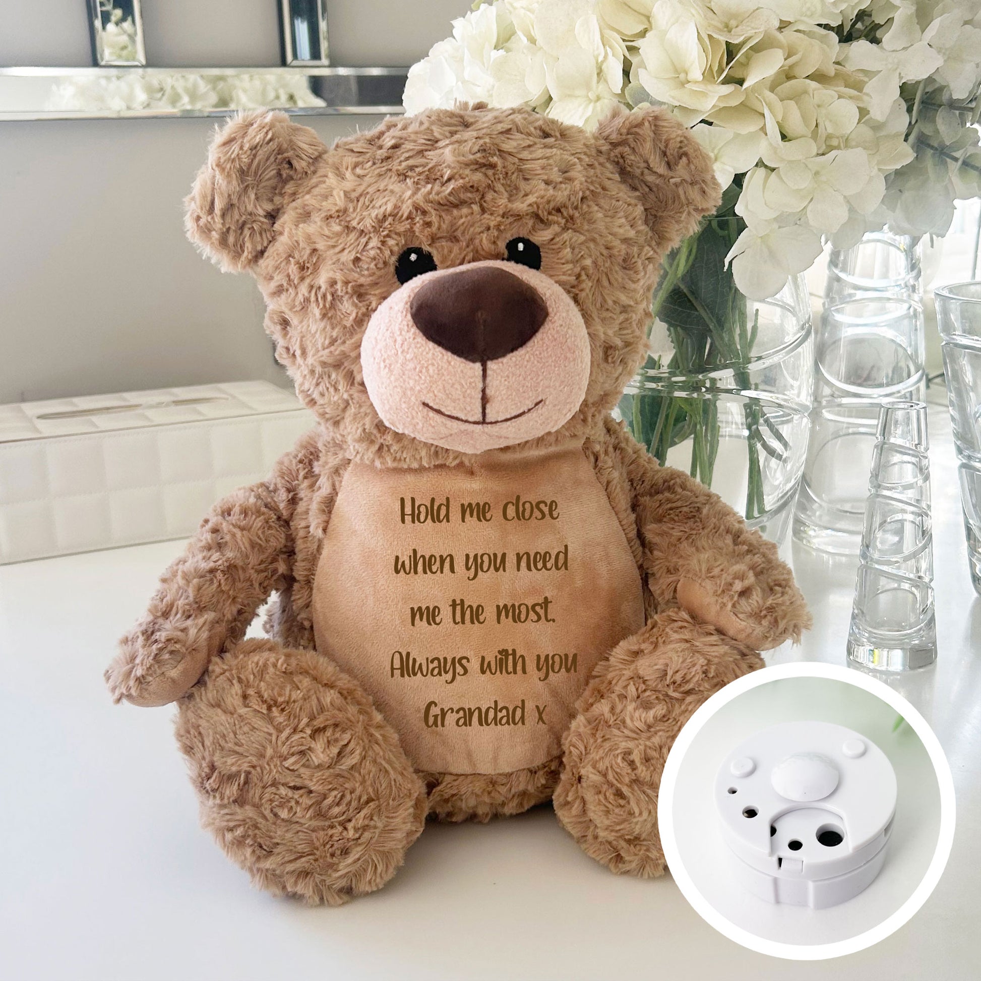 Surprise your loved one with a warm and cuddly recordable teddy bear, perfect for any occasion. Personalise your bear with a special message up to 100 characters. This unique gift idea is perfect for newborns, cheering up a friend, giving a birthday present, or keeping the voice of a lost loved one close.