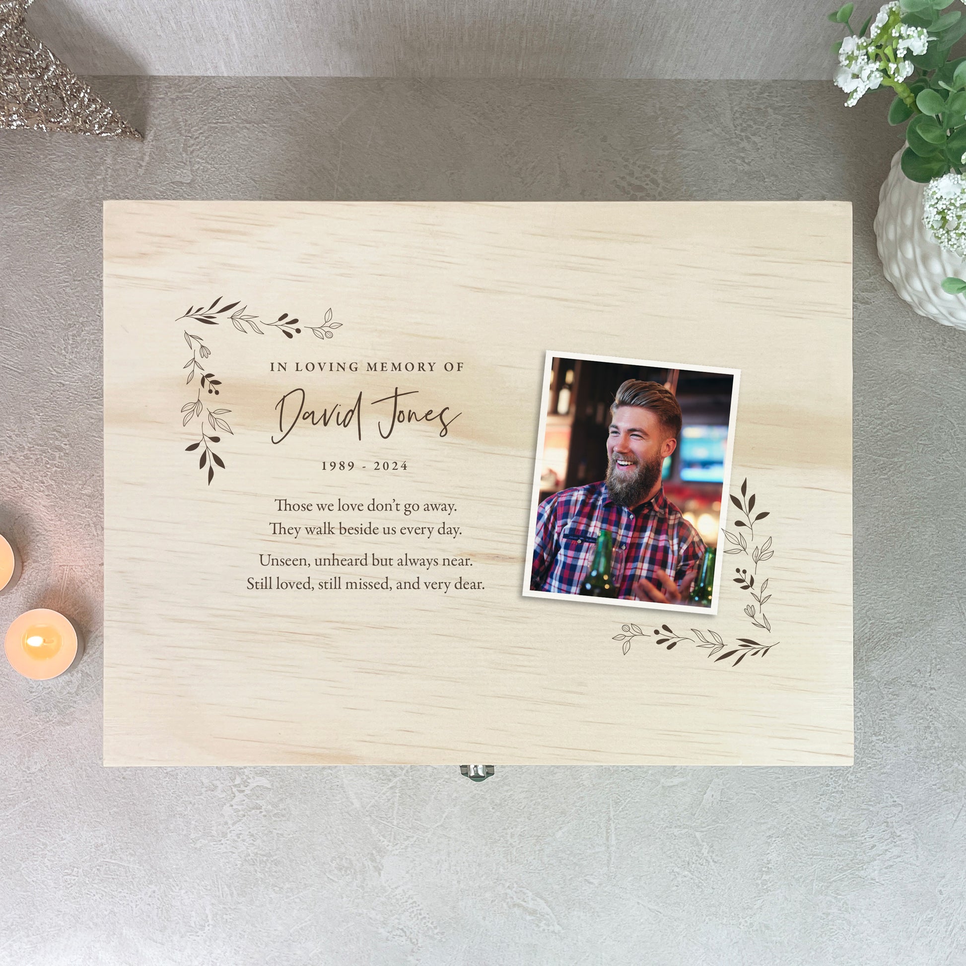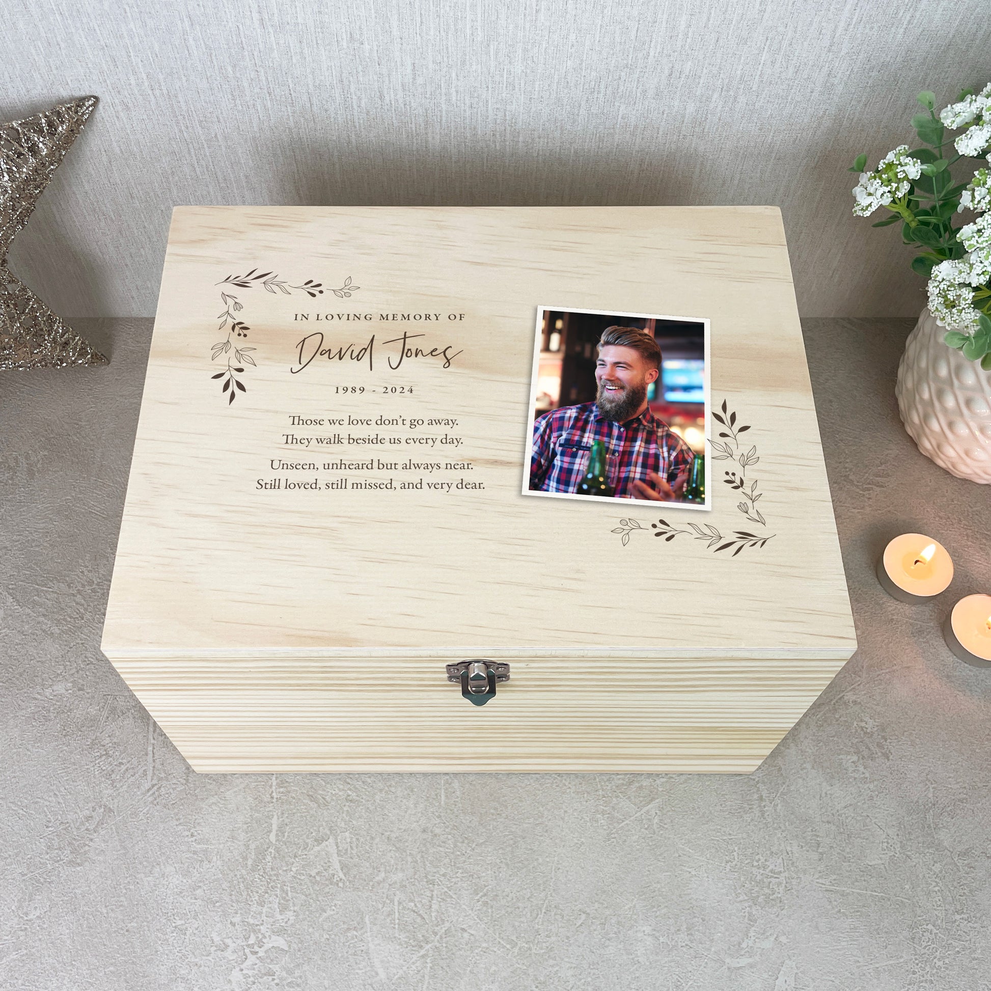 Our large wooden memory boxes are perfect to store precious memories inside. You can even personalise this keepsake box with your favourite photo of a loved one.
