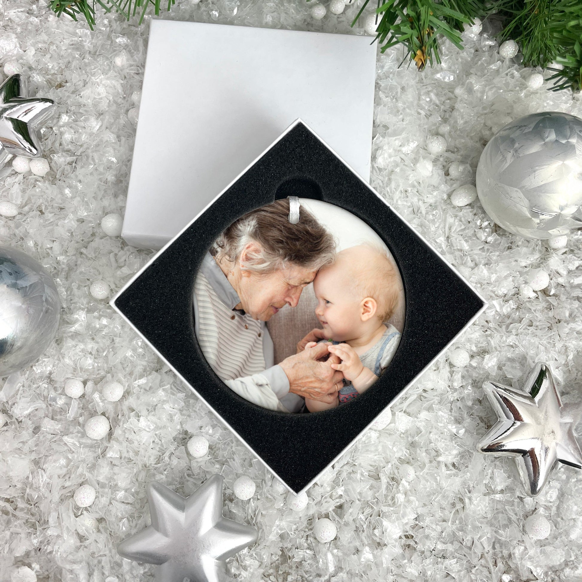 Perfect for adorning your Christmas tree year after year, this heartfelt decoration becomes a touching tribute that celebrates what matters most. Each piece arrives beautifully presented in a protective white gift box, making it an especially meaningful present to share with someone close to your heart this festive season.
